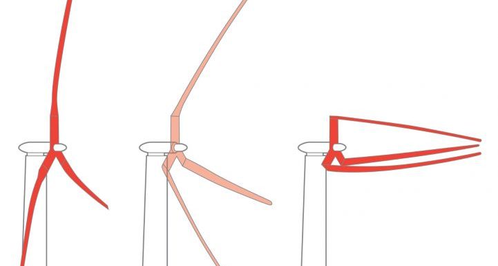 Las palas para el denominado aerogenerador de rotor segmentado ultraligero (SUMR), a la inversa, se orientarían a sotavento. El diseño “go-with-the-flow” se inspiró en las palmeras, que han evolucionado para resistir los vendavales de huracanes.