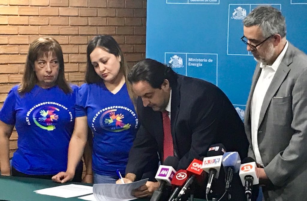 Excelentes noticias para las familias con pacientes electrodependientes entregó, este mediodía, el Ministro de Energía, Andrés Rebolledo, junto al Superintendente de Electricidad y Combustibles, Luis Ávila; el representante de Empresas Eléctricas A.G., Rodrigo Castillo, parlamentarios y dirigentes de la Agrupación “Luz para Ellos”.