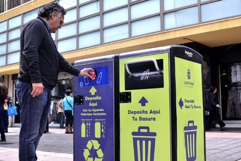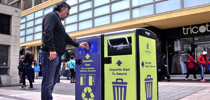Instalan en Santiago el primer basurero inteligente del país que usa energía solar
